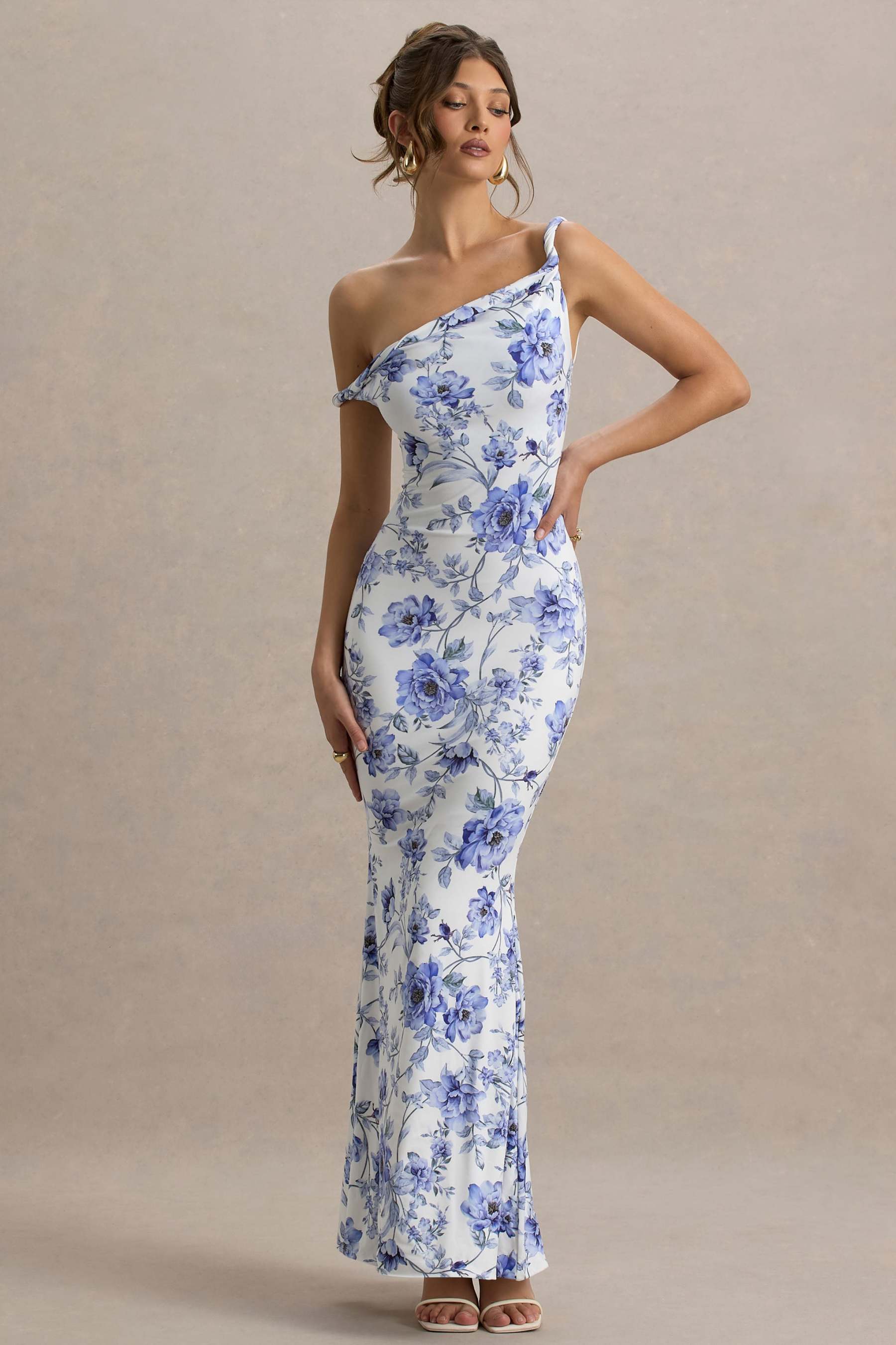 The latest must have maxi of the season is Lita. This maxi dress has been cut in a blue floral print of our premium stretch jersey that hugs every curve. Boasting a twisted asymmetric neckline, style this stand-out staple with a tousled bun and some gold accents for a classic look.